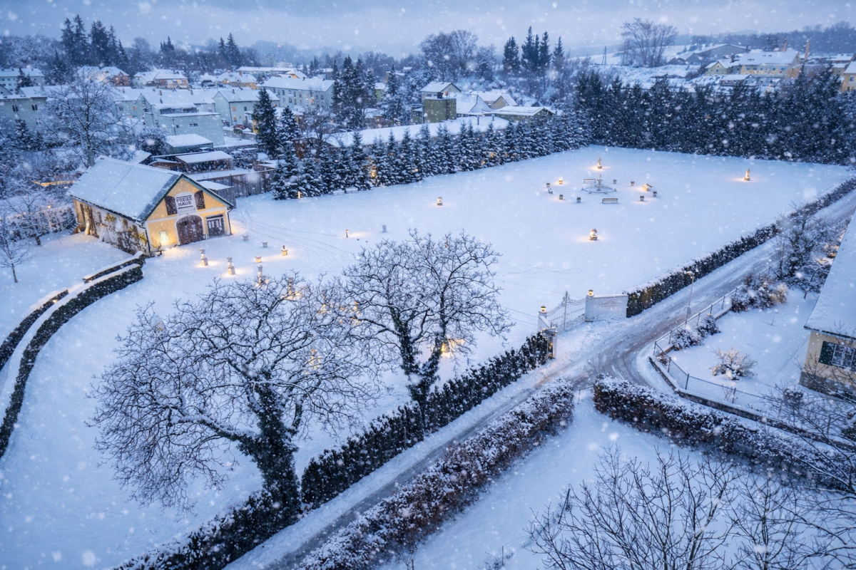 Die Kirche ist nur wenige Meter entfernt und standesamtlich kann direkt bei uns im Wintergarten oder auch unter freiem Himmel, im Pavillon oder im Park beim Springbrunnen, geheiratet werden. Das standesgemäße Einläuten der Hochzeitszeremonie kann auch mit der hauseigenen, geweihten Glocke vollzogen werden.