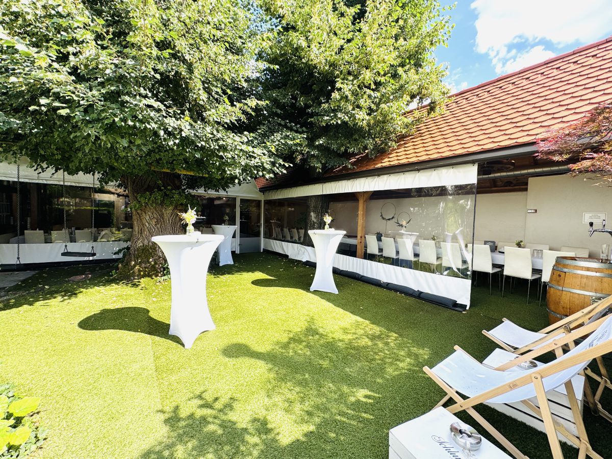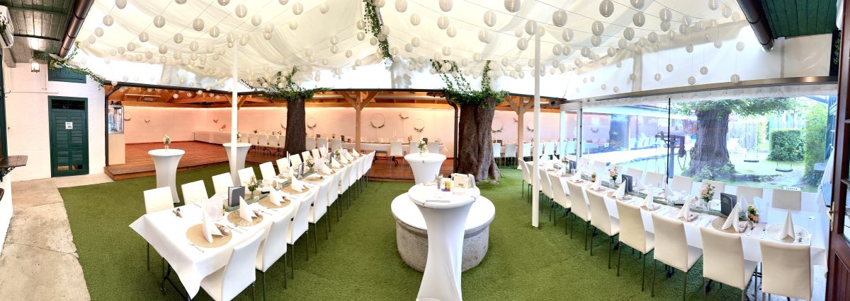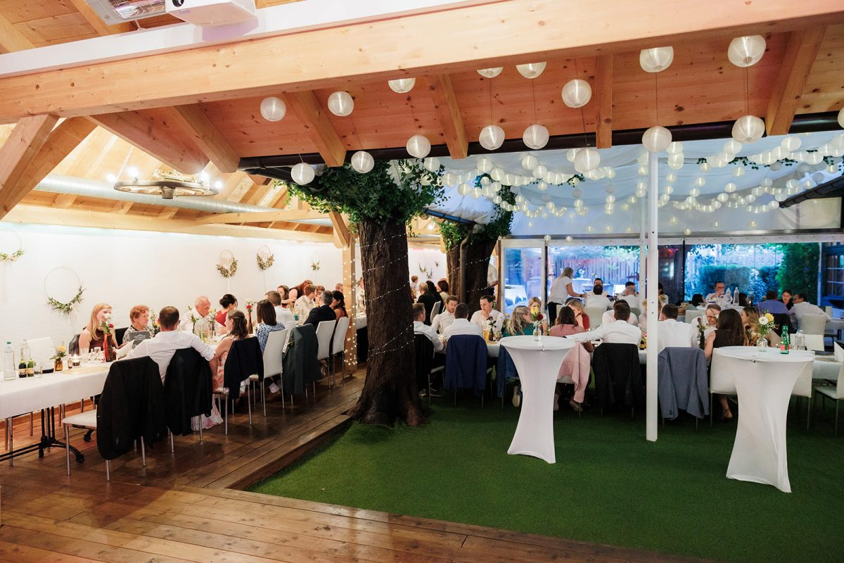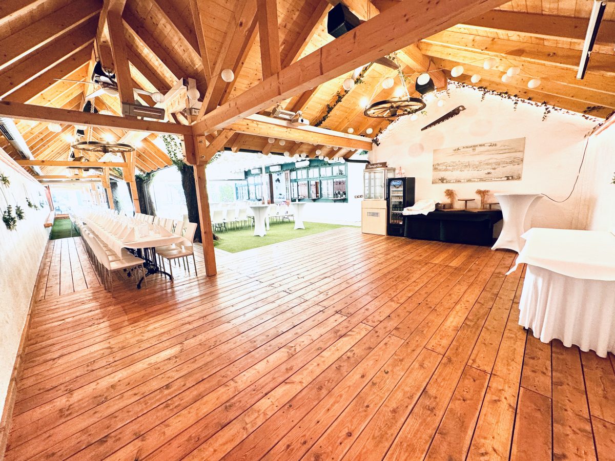 Sollte das Wetter unbeständig sein, tut dies der Feier keinen Abbruch, denn der Hauptbereich des Areals lässt sich vollkommen schließen und beheizen.