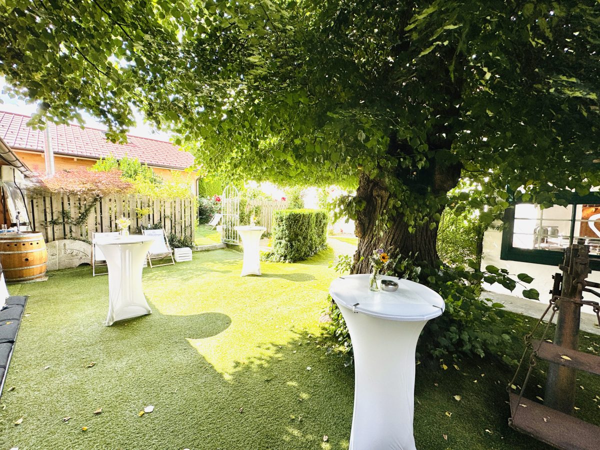 Im Gastgarten findet der traditionelle Akt unserer Hochzeit statt. Umgeben von frischer Luft und natürlicher Atmosphäre bietet er Platz für bis zu 136 Gäste an einer festlichen Tafel.